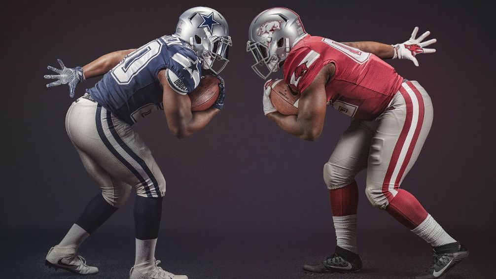 The Razorbacks are playing A&M at Jerry World today and are wearing Cowboy inspired unis to pay homage to J. Jones. I like our "patriots" unis but I do believe that nike did these Ark unis really well.